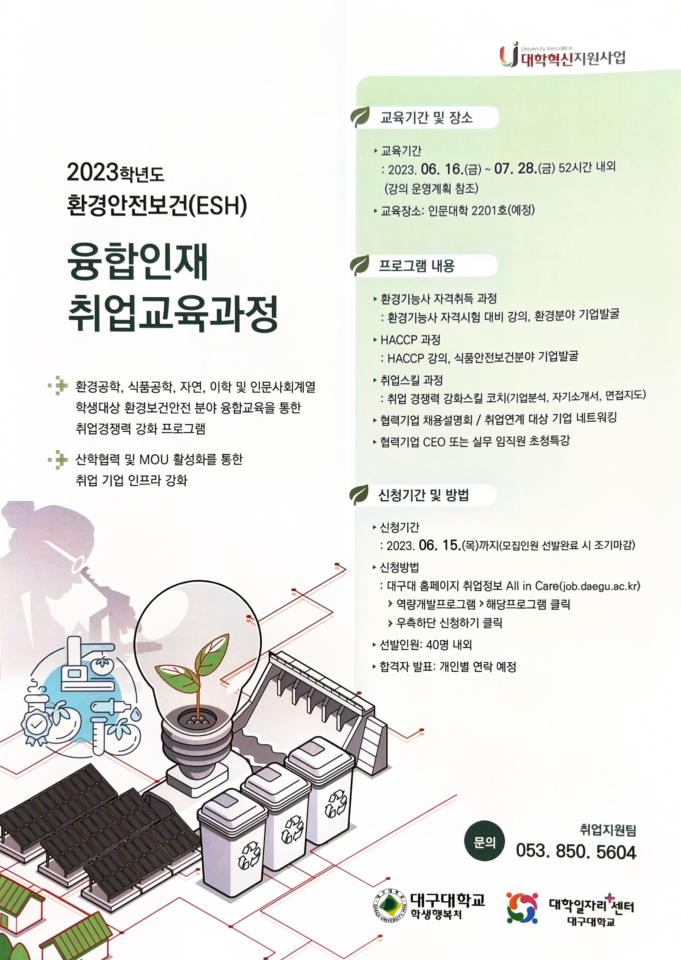 2023 환경안전보건(ESH) 융합인재 취업교육과정 안내